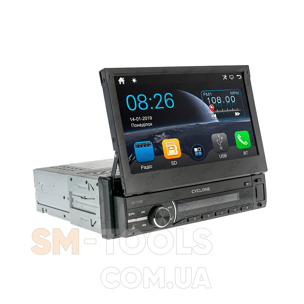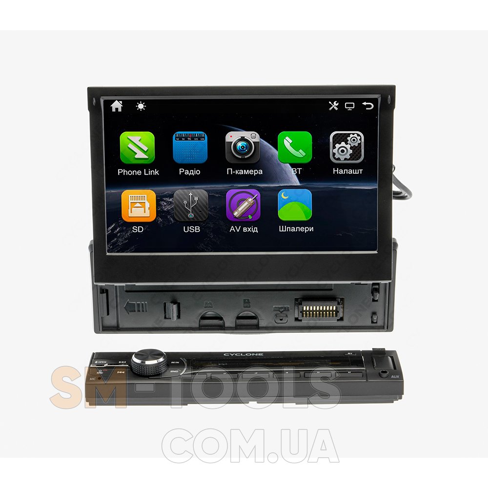 Універсальна 1 DIN магнітола зі знімною передньою панеллю, змінним підсвічуванням кнопок і дисплея, моторизований ємнісний 7 "TFT дисплей.