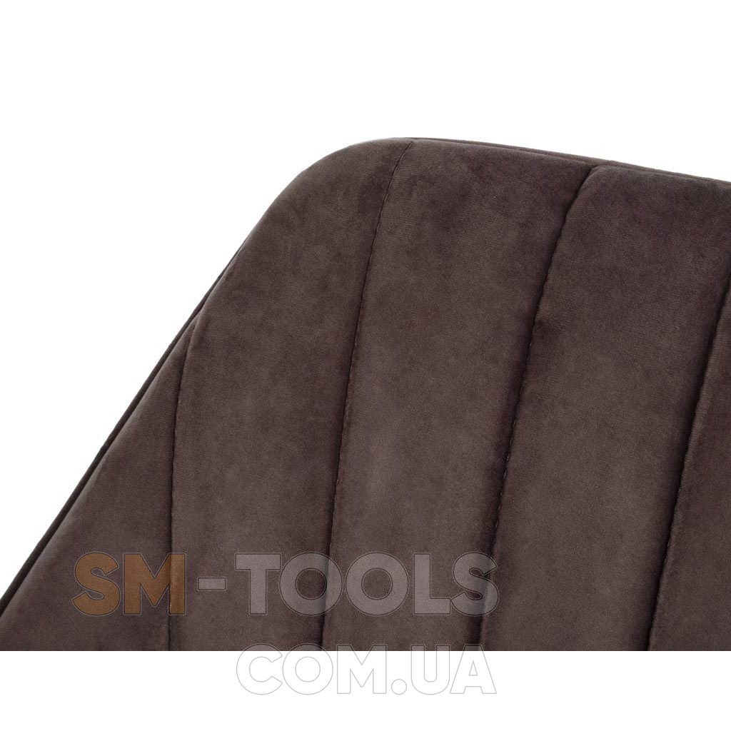 Стул обтянут мягкой, бархатистой и приятной на ощупь тканью, напоминающей велюр. Такой обивочный материал прошёл необходимые тесты на износоустойчивость, поэтому можно использовать кресла в заведениях сегмента HoReCa.