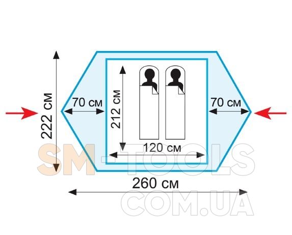 - Зовнішній тент намету стійкий до ультрафіолетового випромінювання.
