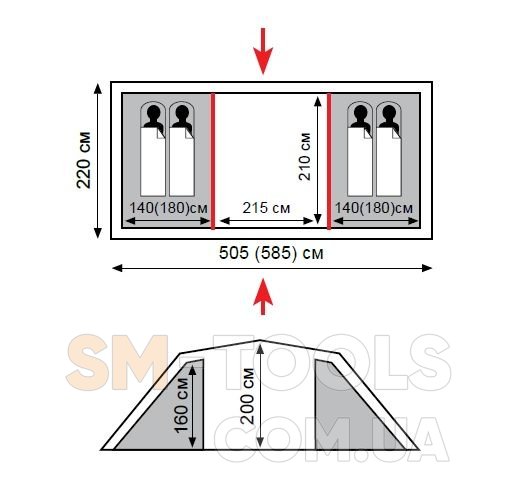 Количество мест: 4+ Тент: 100% полиэстер 75D/190T WR PU 4000 мм в ст