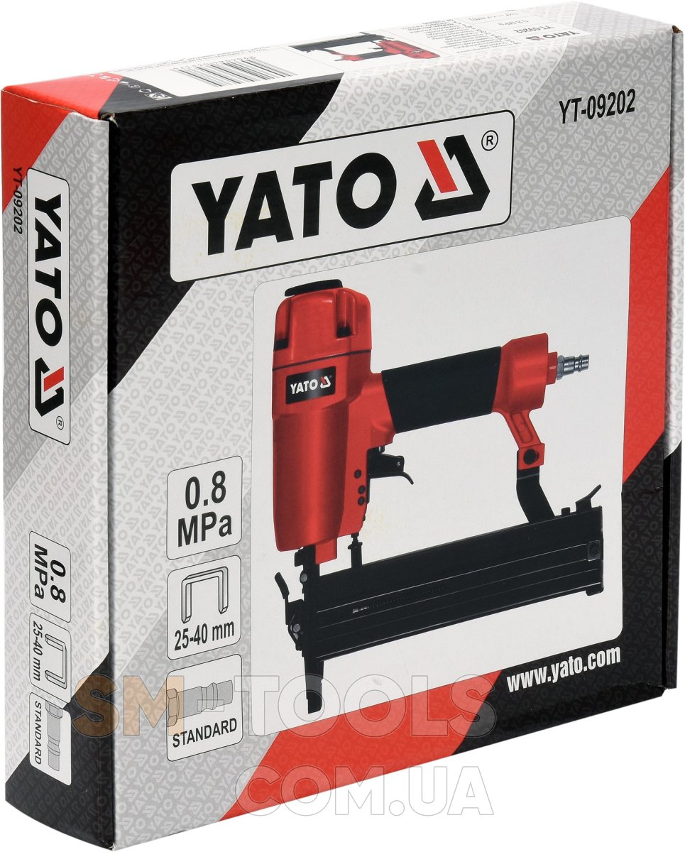 Пневматический степлер YATO YT-09202 предназначен для соединения различных материалов с помощью скоб. Используется в строительстве, столярных работах, в сфере мебельного производства, во время отделочных работ.
