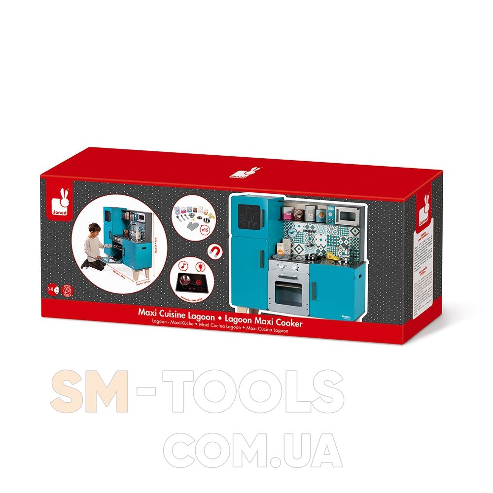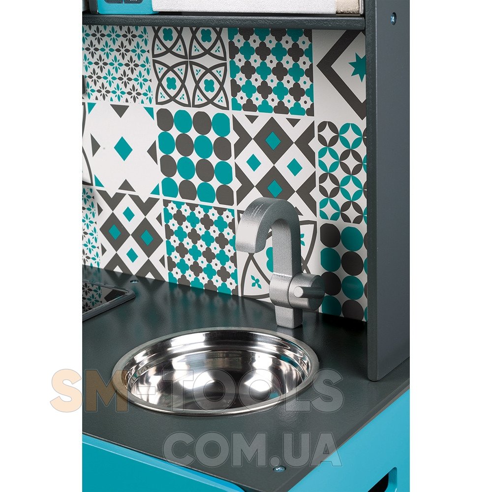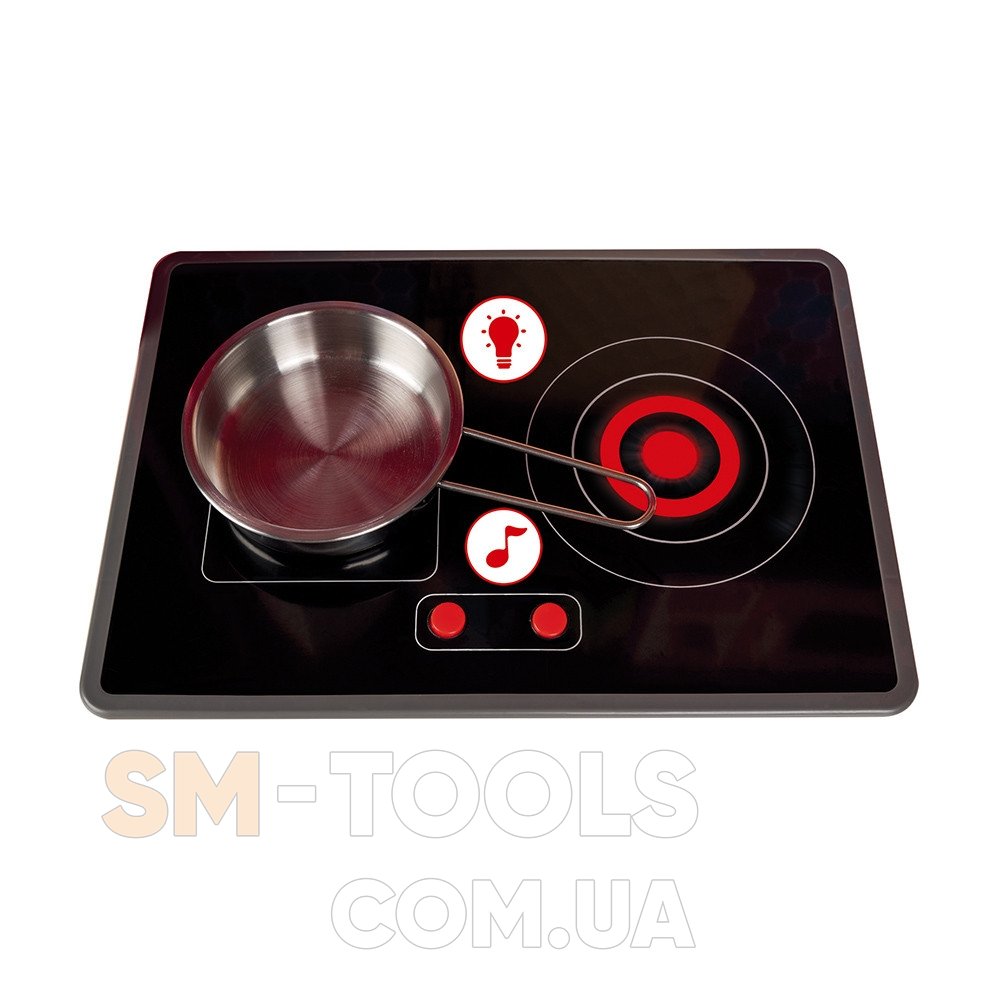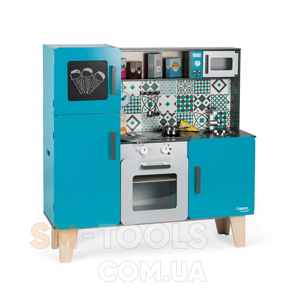 Приготовь вкусные блюда для своих друзей, как мама и папа, и стань маленьким шеф-поваром! В набор входит 15 аксессуаров, среди которых набор колышков для подвешивания 3 металлических ложек, 1 металлическая кастрюля и крышка, 1 металлический дуршлаг, перчатка для духовки, жареное яйцо и 7 картонных коробок для еды (какао, сахар, апельсиновый сок, макаронные изделия, сыр, молоко и рис). Варочную поверхность со световыми и звуковыми эффектами, работает от 2-х АА батареек (не входят в комплект). Кухня произведена из натурального дерева.