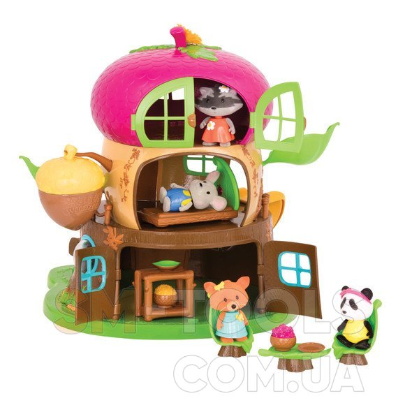 Дом-желудь прекрасно подходит для Li'l Woodzeez Bobbleez. Он состоит из трех этажей, на которых живут маленькие лесные жители. На первом этаже - гостиная, на втором - кровать и выход на. На верхнем этаже удобно прятаться. Разноцветные желуди могут весело скатиться с горки. Если нажать на почтовый ящик - включается свет у двери. Дом украшен яркими цветами и листьями. Все двери открываются, а мебель можно расположить по своему усмотрению. В этом доме может поселиться любая семья Li'l Woodzeez. Рекомендуемый возраст: от 3 лет.