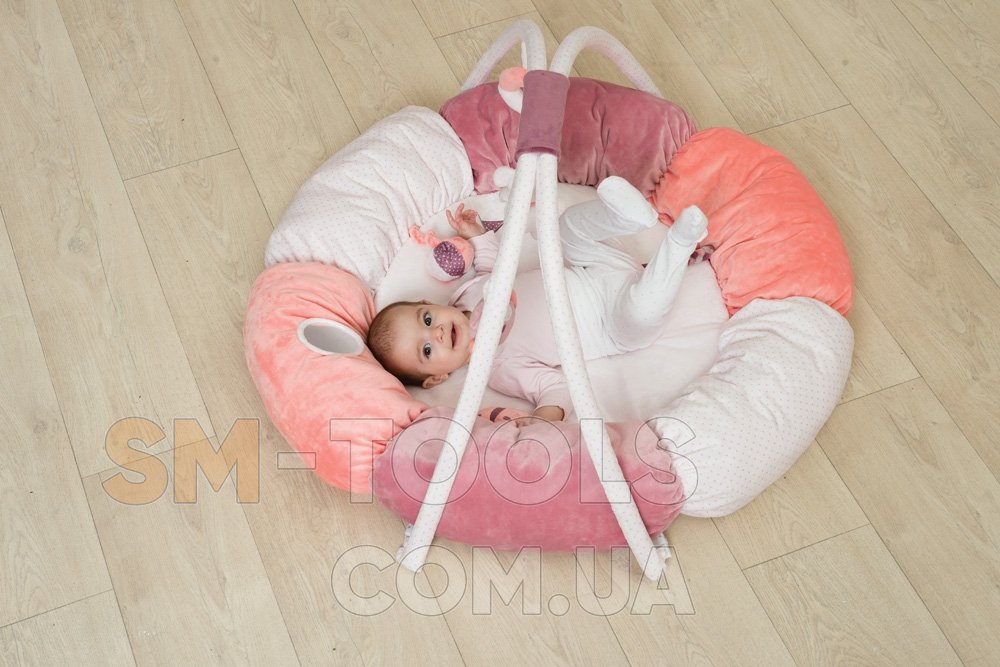 - по краю матраса расположены белые и пухлые подушки, которые не дадут ребенку выползти за пределы коврика;