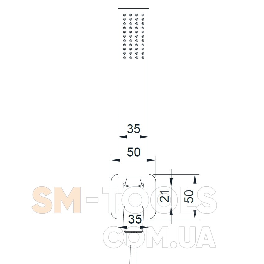 Ручная лейка выполнена в прямоугольной форме и имеет один тип струи.