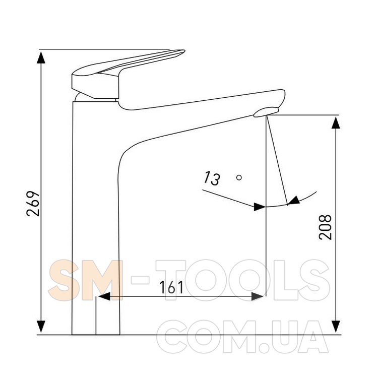 Высота излива (мм) 208