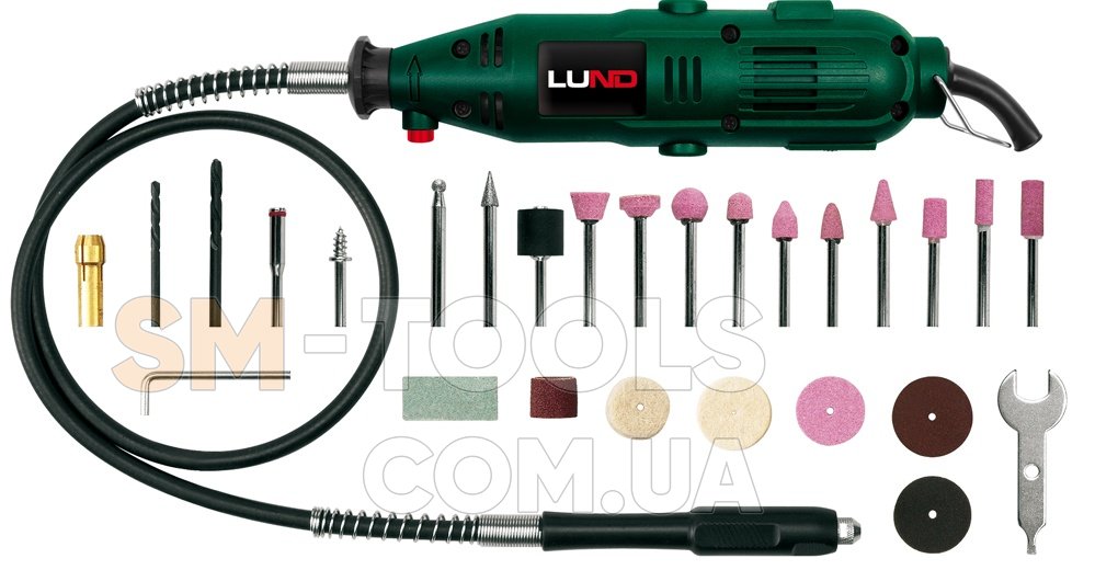 Универсальная шлифовальная машина LUND 79314 предназначена для разновидных домашних работ, таких, как сверление, фрезерование, гравирование, полировка, очистка и многие другие. Именно сейчас, благодаря высоким оборотам, Вы сможете заняться работой, выполнить которую раньше было невозможно. Небольшой размер шлифмашины гарантирует комфорт во время работы. Дополнительный патрон на эластичной стреле обеспечивает доступ в труднодоступные места.