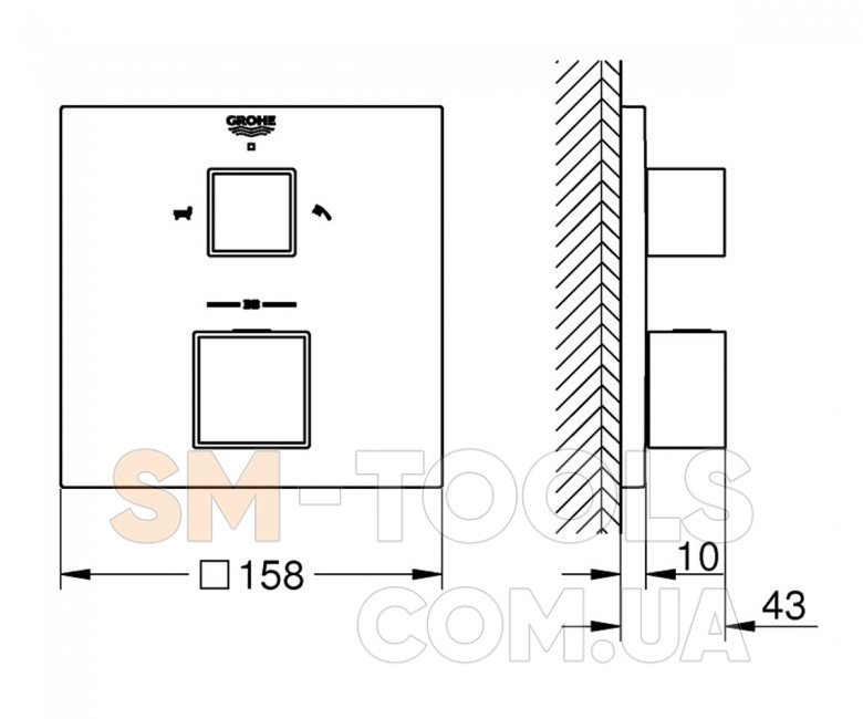- GROHE SafeStop Plus опційно обмежувач температури на 43 C /46 C, включений
