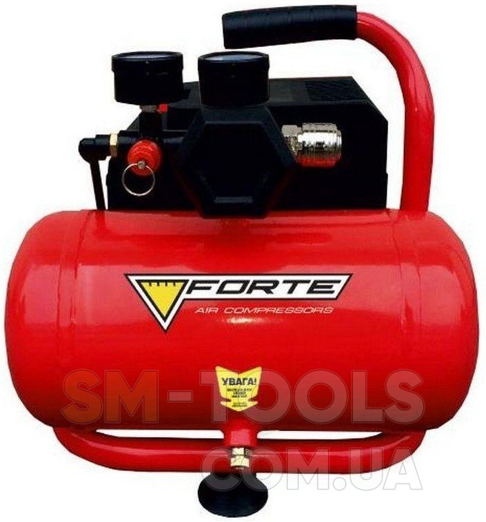 Безмасляний компресор - COF-6 від надійного бренду Forte має невеликі габарити - всього 360 x 310 x 350 мм і невелику вагу - 9.5 кг, що робить цю модель дуже зручною в переміщенні та експлуатації. Широко використовується в побутових потребах: фарбування, продування, підкачування коліс, приведення в дію різних пневмоінструментів. Висока продуктивність і потужний двигун 750 вт дозволяють збільшити працездатність пристрою. Панель приладів зручно розташована на фронтальній частині компресора, а показання манометрів легко зчитуються і дозволяють повністю контролювати подачу повітря під час роботи. Легко транспортується у будь-якому положенні завдяки зручній ручці.
