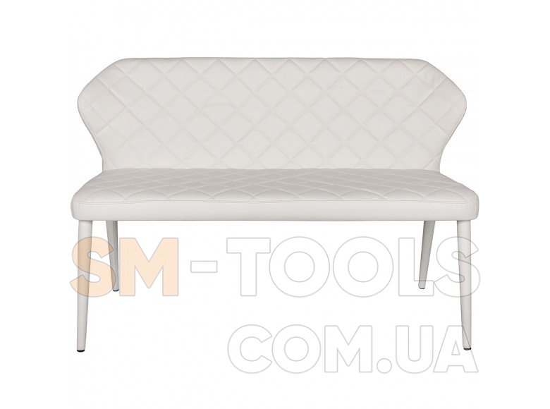 Удобная банкетка Nicolas Valencia, каркас которой выполнен из металла и обтянут эластичным кожзамом белого цвета. Сиденье и спинка декорированы прострочкой “ромб”. Ноги банкетки также выполнены из металла, обтянутого кожзамом.