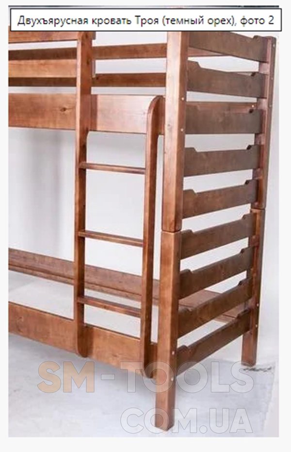 Двухъярусная кровать «Троя» - это по-настоящему выгодная покупка для обустройства детской спальни. И, конечно же, главным ее преимуществом можно считать то, что она выполнена из массива сосны в спокойном оттенке темного ореха. Это прочный, надежный, натуральный и экологически чистый материал, полностью безопасный для здоровья вашего ребенка. Лесенка, которой оснащена кровать «Троя», выдерживает большие нагрузки, поэтому вы можете не беспокоиться, что дети могут травмироваться при подъеме на «2 этаж». Верхний ярус так же оснащен защитной планкой, чтобы ваш непоседа не упал с него во время сна.