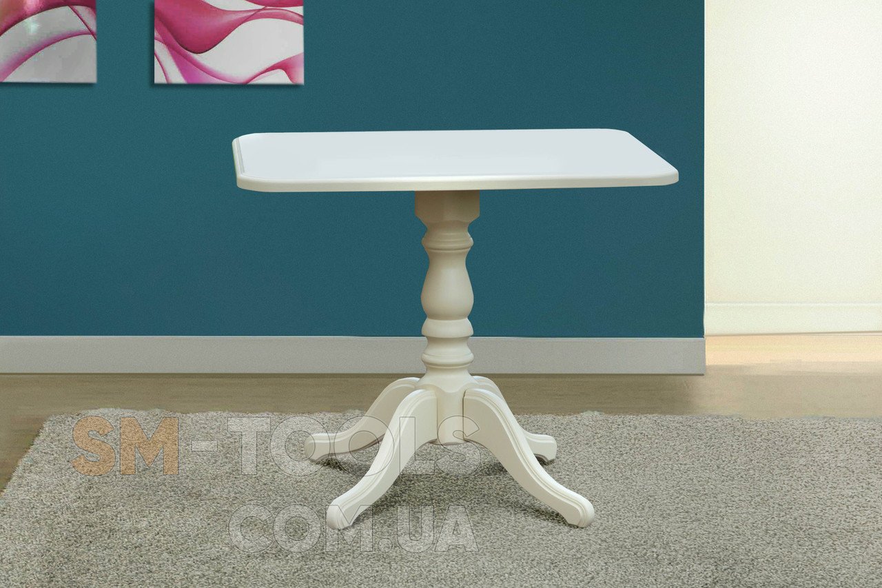 Моно - не раздвижной стол для гостиной из натурального дерева с элегантной точеной ножкой. Торцы стола красиво зафрезированы и окрашены. Столик изготовлен из массива натурального дерева (каркас и ножки). Столешница изготовлена из плиты МДФ, покрытой шпоном.