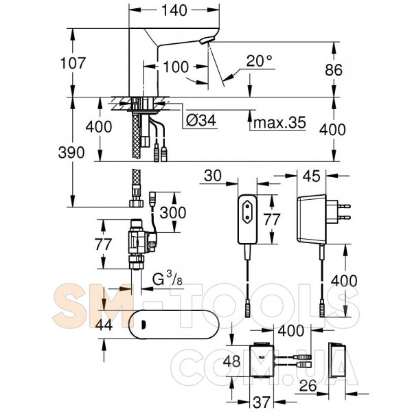 Змішувач для умивальника Grohe Euroeco Cosmopolitan E 36409000 Bluetooth