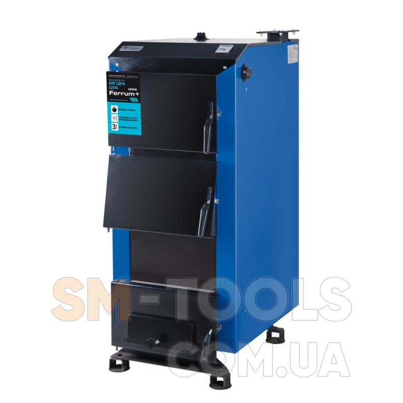 Линейка твердотопливных котлов серии Ferrum+ FSF+ позволит обеспечить теплом практически любой частный дом. Высокоэффективная конструкция позволяет получить высокий КПД, т.е. минимизировать затраты на топливо. Все котлы имеют возможность подключения механического регулятора тяги и системы автоматики. Трехдверная конструкция позволяет легко эксплуатировать котел. Высокое качество сборки и толщина стали теплообменника 6 мм позволяют котлу служить на протяжении длительного срока. Дополнительно в конвективных каналах топки установлен турбулизатор, который дает дополнительный прирост к КПД котла.