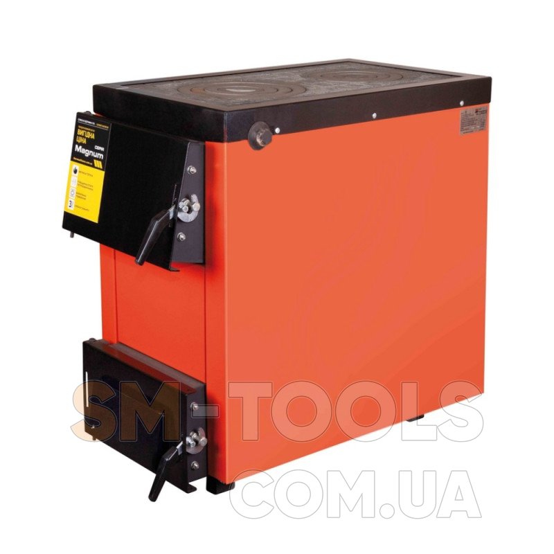 Серия Magnum SSF – стальные водогрейные твердотопливные котлы с двухконфорочной варочной поверхностью, чугунной колосниковой решеткой и ручной загрузкой топлива.