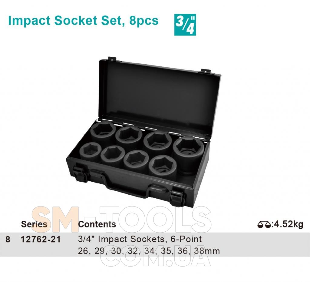 Набор торцевых головок ударных Whirlpower 1276-0408, 3/4"DR 26-38 мм (8 предметов)