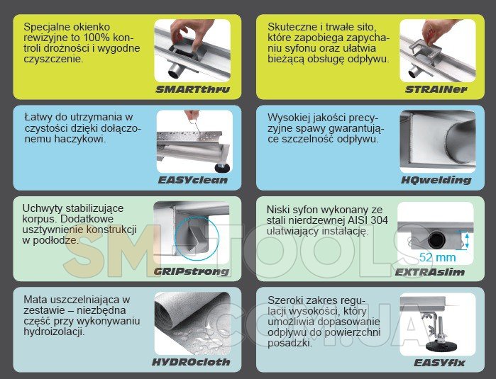 STRAINER - эффективное и долговечное сито, которое предотвращает засорение сифона и облегчает текущее дренажное обслуживание;