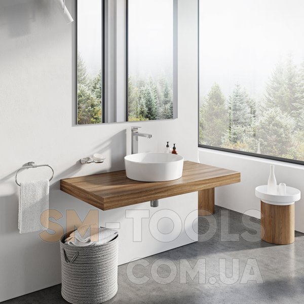Аксесуари: стільниця під умивальник / тумба під умивальник на стільницю, нерухомий злив для умивальника, сифон хромований або меблевий, подовжений змішувач Chrome або 10°