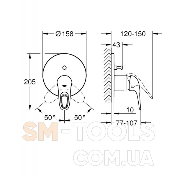 С настенными розетками GROHE QuickFix (скрытые эксцентрики, уплотнители, крепления)