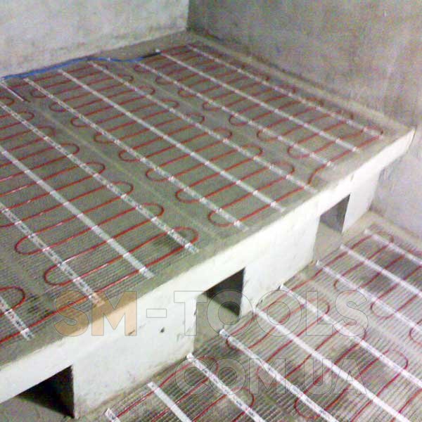 Устанавливается, как правило, в слой плиточного клея, что позволяет использовать нагревательный мат даже в тех случаях, когда подогрев пола изначально не планировали или забыли оставить запас высоты стяжки для теплого пола.