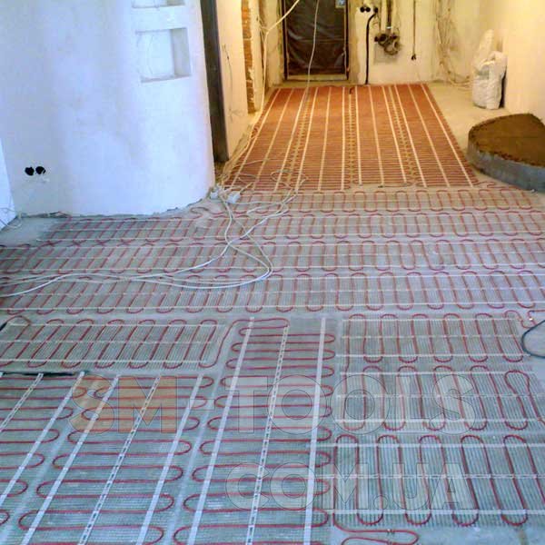 Встановлюється, як правило, шар плиткового клею, що дозволяє використовувати нагрівальний мат навіть у тих випадках, коли підігрів підлоги спочатку не планували або забули залишити запас висоти стяжки для теплої підлоги.