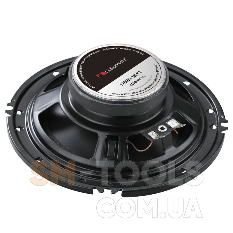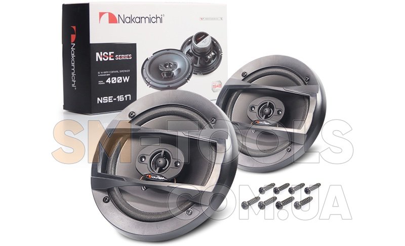 Nakamichi NSE-1617 коаксіальна акустична система розміру 6". Завдяки широкому спектру частот ви зможете трохи набагато більше. розміру, незалежно від того, де вона встановлена у передніх, задніх дверях вашого автомобіля або на задній поліці.