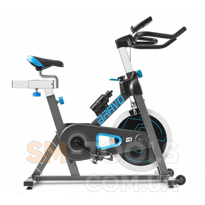 Велосипедний спінінг Hop-Sport HS-045IC Bravo – це високоякісне обладнання для тренування в домашніх умовах. Завдяки механічному опору із затискачем безпосередньо на 18-кілограмовому маховику він дозволяє створювати максимальний опір до повної зупинки. Велотренажер характеризується тихою експлуатацією, сучасним дизайном, міцною конструкцією із сталевих профілів та міцними механічними елементами.