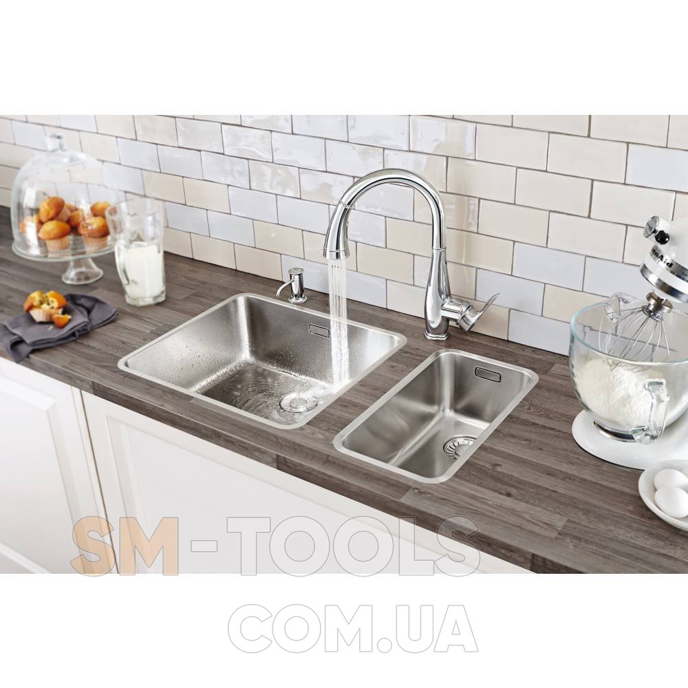 Высокий излив, вращающийся в радиусе 360°, обеспечит Вам максимальную свободу движений при приготовлении блюд и мытье кухонных принадлежностей.