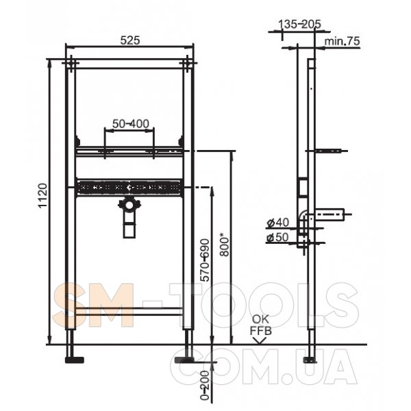 Інсталяційна система для умивальника Sanit на рамі 90.667.00.T000