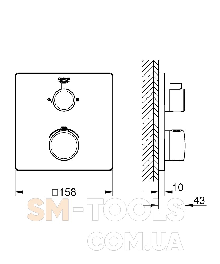 Grohtherm Термостат для душа с переключателем на 2 положения верхний/ручной душ (24079000) - 1 шт.