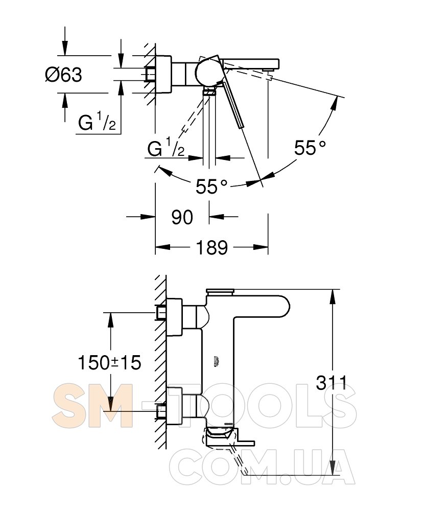 Тип монтажа смесителя: На стену