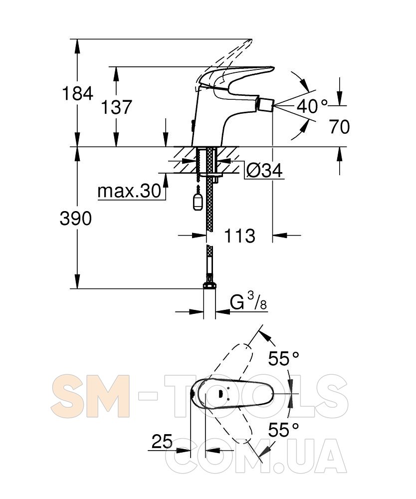 Добавьте идеальный завершающий штрих в дизайн вашей ванной со стильным и надежным смесителем для биде GROHE Eurostyle с цепочкой.
