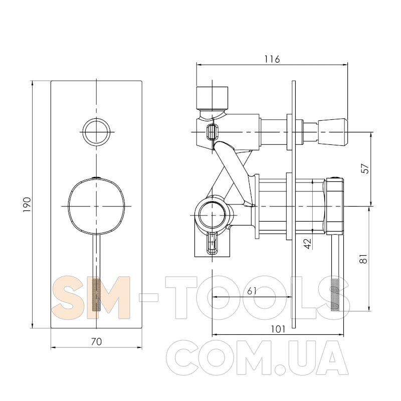 Смеситель скрытого монтажа для ванны/душа