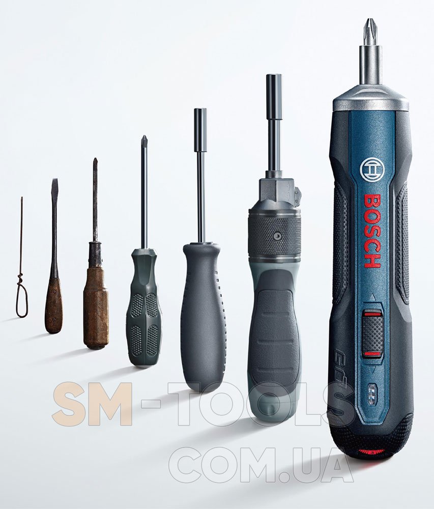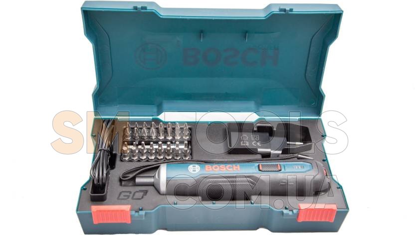 Акумуляторна викрутка Bosch GO Kit - оригінальний інструмент з літій-іонною технологією, новий клас інструменту для професійних користувачів. Потужна: в 4 рази потужніша, ніж будь-яка інша викрутка з таким же розміром і формою. Форма і режим роботи максимально близькі до ручної викрутки. Електронна муфта E-clutch відразу зупиняє інструмент. Може стати в нагоді в таких завданнях, як установка електричних розеток, збирання меблів, установка світлових приладів, ремонт транспорту, ремонт побутових електроприладів.