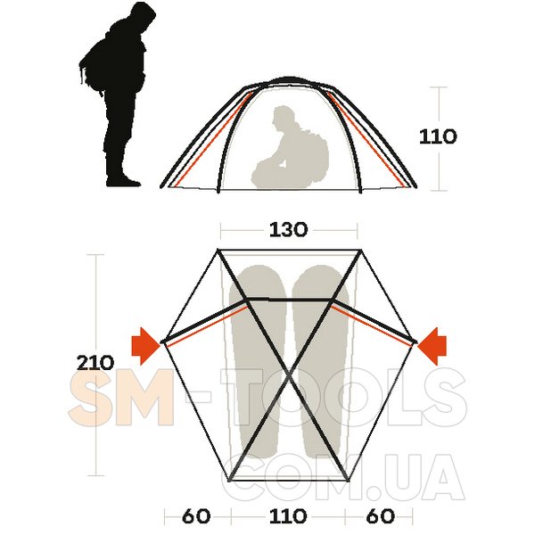 Внутренняя палатка (ДхШхВ), мм: 2100 х 1300 х 1100