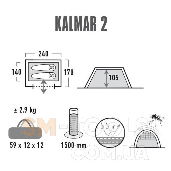 Легкая туристическая, 2-х местная палатка High Peak Kalmar 2. Быстрая установка и сборка, небольшой вес, москитная сетка на входе, возможность установки козырька, все, что необходимо для коротких путешествий.