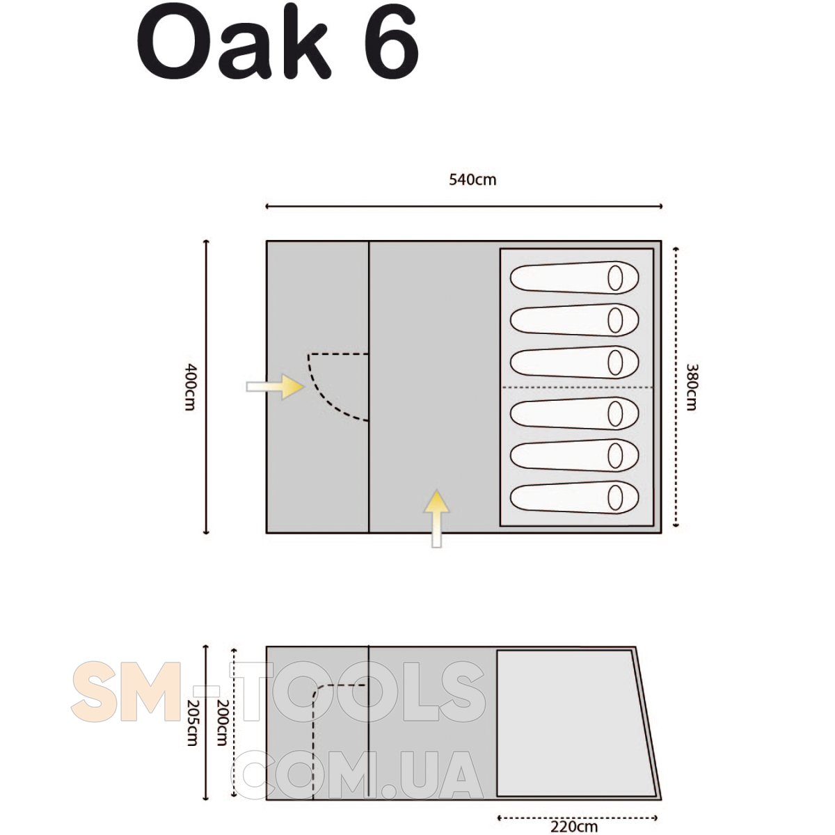Туннельная палатка Highlander Oak 6 Blue с большим тамбуром, верандой и просторной спальной зоной. Модель оборудована двумя широкими независимыми входами, а также возможностью создать навес над боковым входом при помощи вертикальных стоек для защиты от солнца или дождя. Большие панорамные окна наполнят внутреннее пространство светом, а москитные сетки на вентиляционных панелях и входных дверях защитят от нежданных насекомых. Наружный тент с проклеенными швами имеет водостойкость 3000 мм водяного столба, благодаря чему надежно защитит Вас от сильного дождя. Палатка выполнена из пожароустойчивого материала, комфортная и безопасная, идеально подходит для компании из 6 человек.