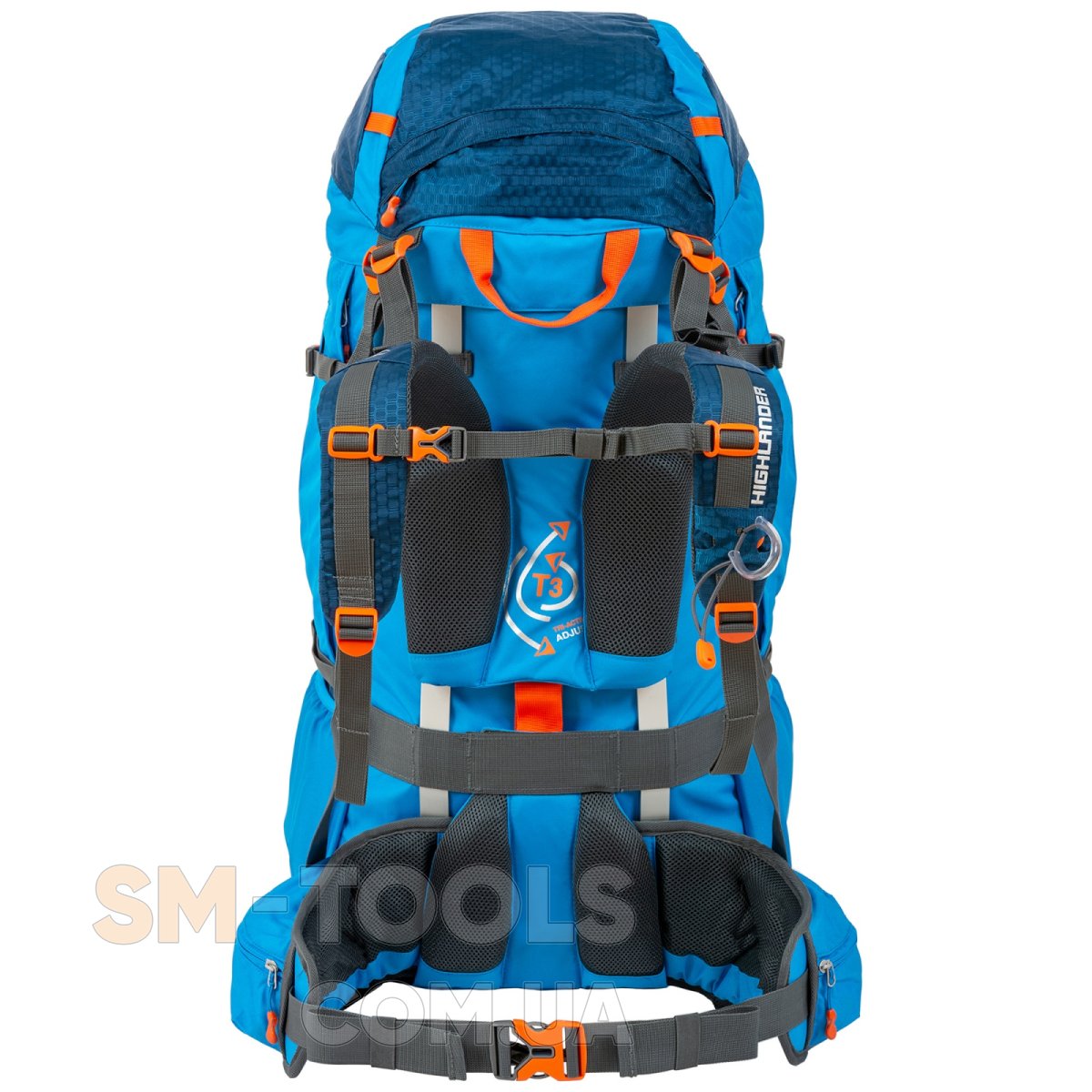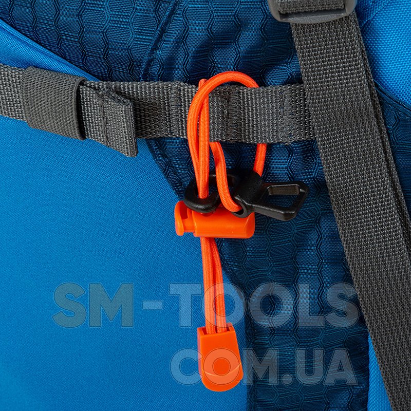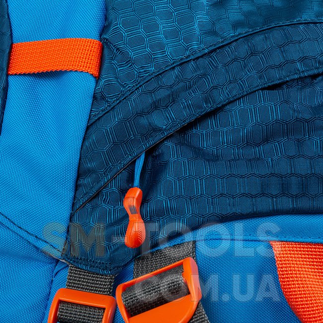 - Плечевые лямки, регулируемые по высоте, анатомической формы с мягкой пенополиуретановой подкладкой, обшиты дышащей сетчатой тканью, оборудованы мультифункциональной петлей для навеса легкого снаряжения