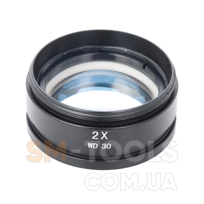 Насадка на резьбе Ø 4.8 см, накручивается на объектив стереомикроскопа с целью удвоения общей кратности прибора. У микроскопа Konus Crystal рабочее расстояние с такой насадкой составляет 30 мм, что соответствует маркировке “WD 30” на ее боковой поверхности.