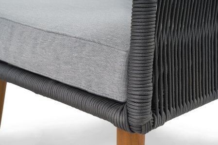Для комфорта пользователей в комплект садовой мебели Matera из ротанга входят бархатистые подушки с легко снимающимися защитными чехлами на специальных застежках. Чехлы, изготовленные из смеси полиэстера и хлопка, обладают отличными водоотталкивающими свойствами, а также хорошо защищены от раннего изнашивания.
