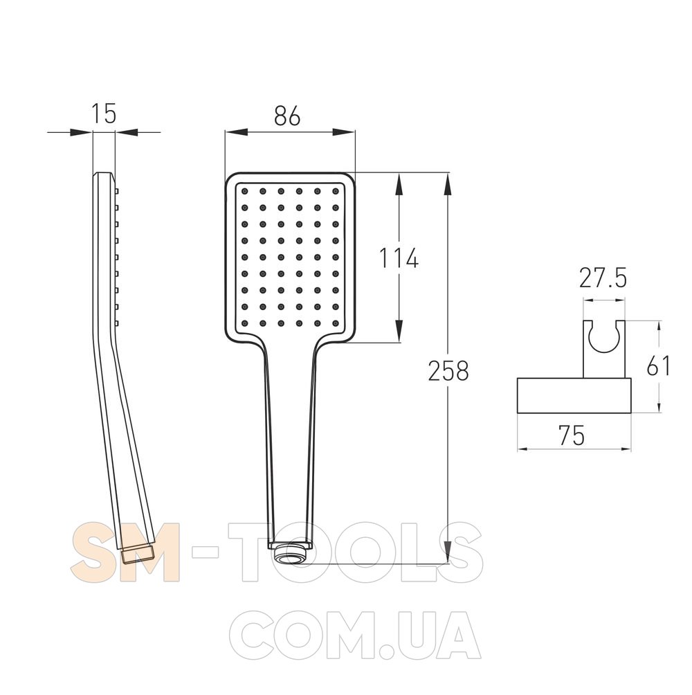 De la Noche черный душевой набор (ручной душ 1 режим, шланг, держатель)