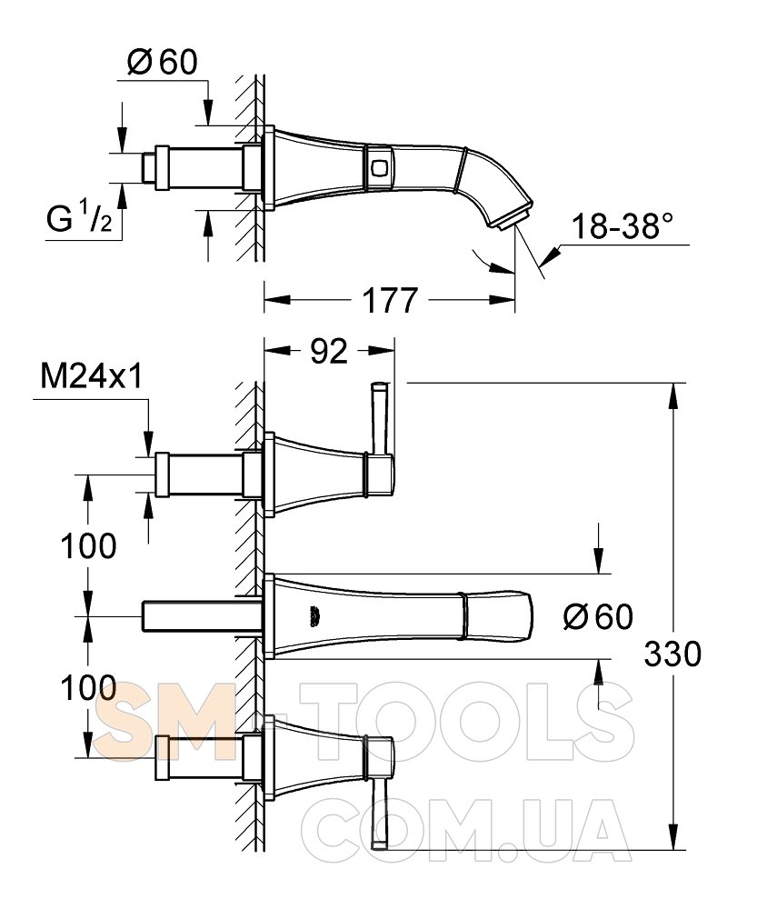 Комплект верхней монтажной части для 29025000 (Встраиваемый смеситель GROHE Ondus для скрытого монтажа, двухвентильный)