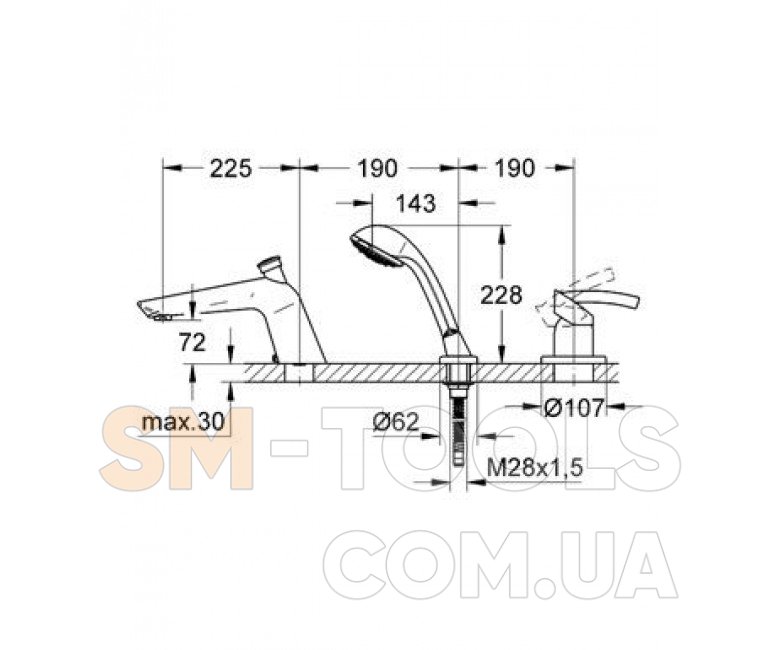 Смеситель на борт ванны на три отверстия. Данная модель представляет слияние прямых и изогнутых форм. Хромированное покрытие сохраняет неизменный блеск на протяжении всего срока службы. Изогнутый рычаг имеет эргономичную конструкцию и плавно двигается за счет керамического картриджа. На корпусе смесителя находится автоматический переключитель ванна/душ. Душевая лейка с тремя режимами струи: Normal, Jet, Rain, Massage. Без встроенного монтажного короба.