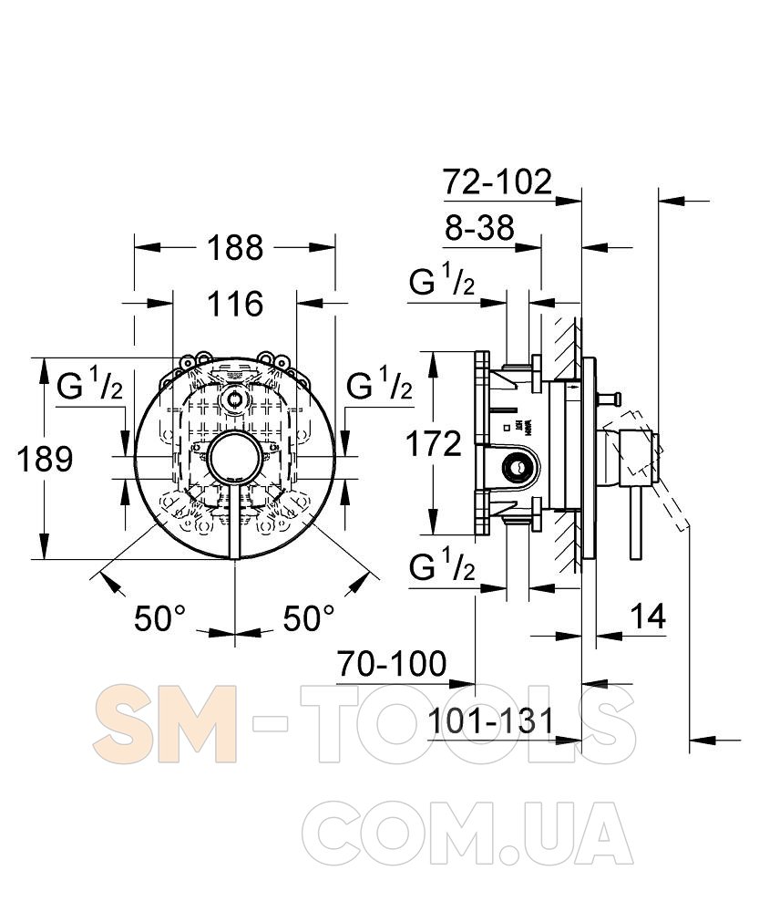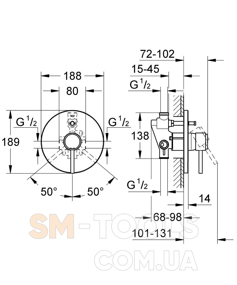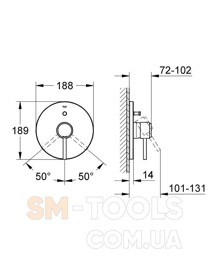 Комплект верхней монтажной части для 35501000 (Универсальный смеситель для ванной или душа GROHE Rapido E для скрытого монтажа)
