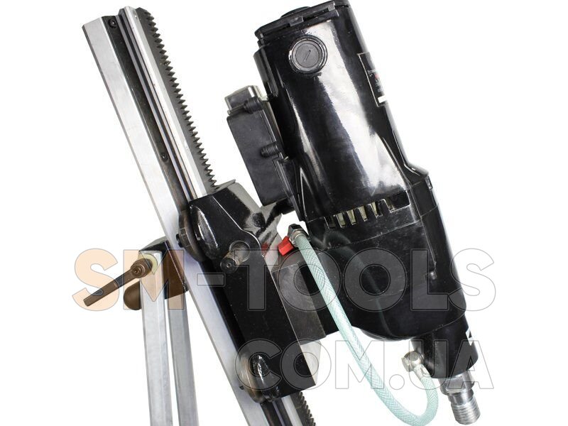 Модель рассчитана на мокрое бурение, это обеспечивает снижение образования пыли и гарантирует высокую точность в работе. Помимо этого, при бурении с подачей воды снижается износ коронки.