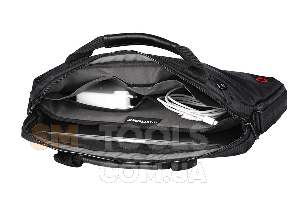 Деловая сумка Wenger Format 14" Slimcase c отсеком для ноутбука и планшета. Стиль: Business/Casual - ежедневные поездки на работу или учёбу. Сумка имеет такую компоновку: мягкое главное отделение с подкладкой против царапин (anti-scratch lining) для ноутбука с диагональю до 14 ". Разделитель файлов с двумя внутренними сетчатыми карманами для аксессуаров. Отделение-органайзер оснащен карманом для планшета до 10" с антицарпающей подкладкой.