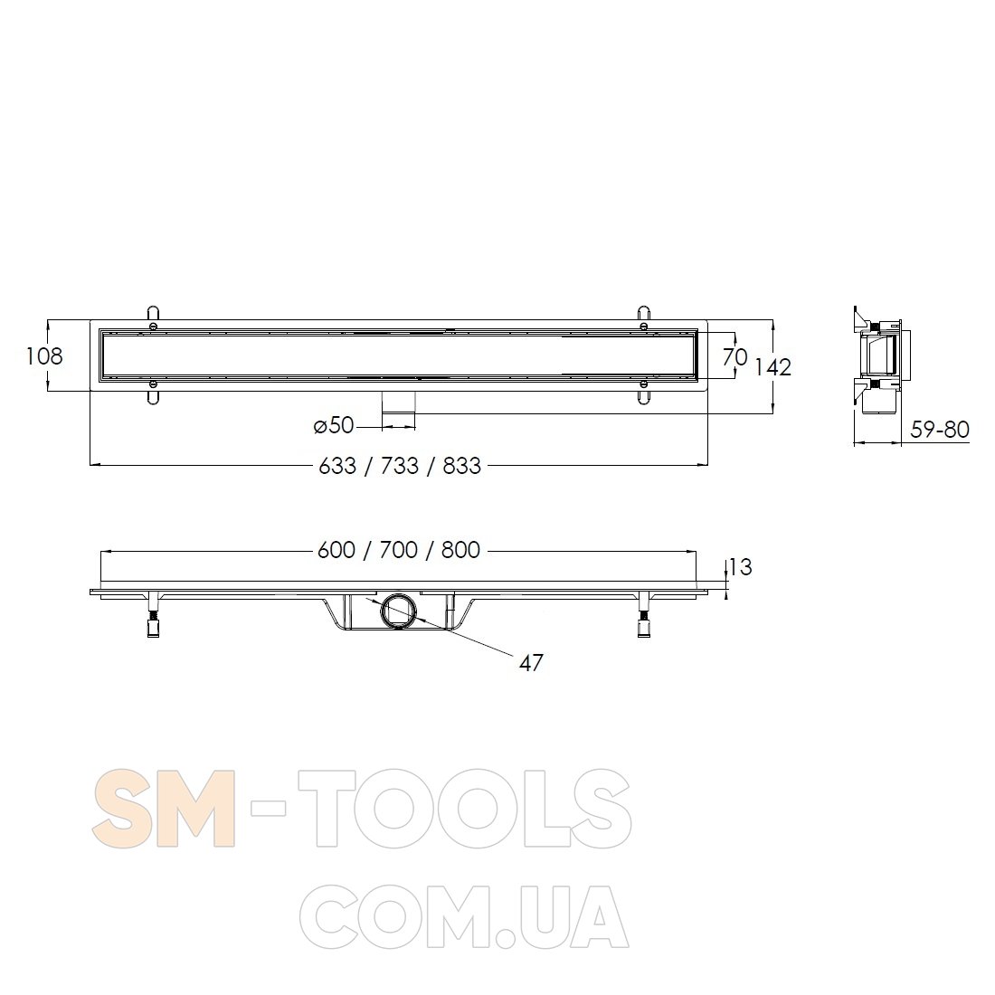 Характеристики Линейный трап 70см с решеткой сплошной VOLLE 90-22-702:
