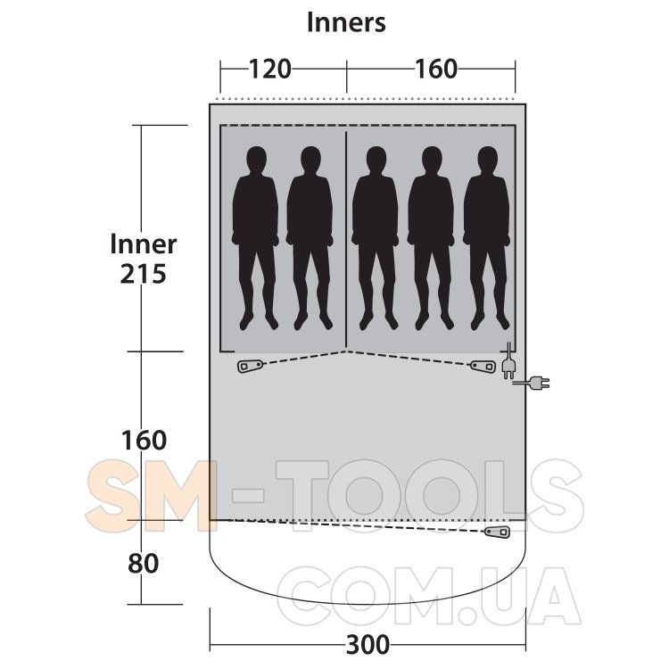 Внутренняя палатка (Д х Ш х В): 215 х 280 х 190 см