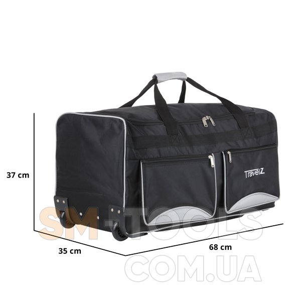 Дорожная сумка на колесах TravelZ Wheelbag 90 Black для удобного хранения необходимых вещей в путешествиях. Сумка изготовлена с Polyester 600D, он наиболее практичный и реально может выдержать любые дорожные условия. Классический дизайн с удобными лицевыми карманами и главным отсеком с широким U-образным входом на молнии предназначенный для легкой загрузки/выгрузки вещей. Удобная система телескопической ручки и два колеса с усиленной защитой по бокам, создаст максимально комфортное передвижение по транспортным вокзалам и экзотическим городам. Будьте уверенны про отличную защиту и безопасность ваших вещей с дорожной сумкой TravelZ Wheelbag 90 Black.