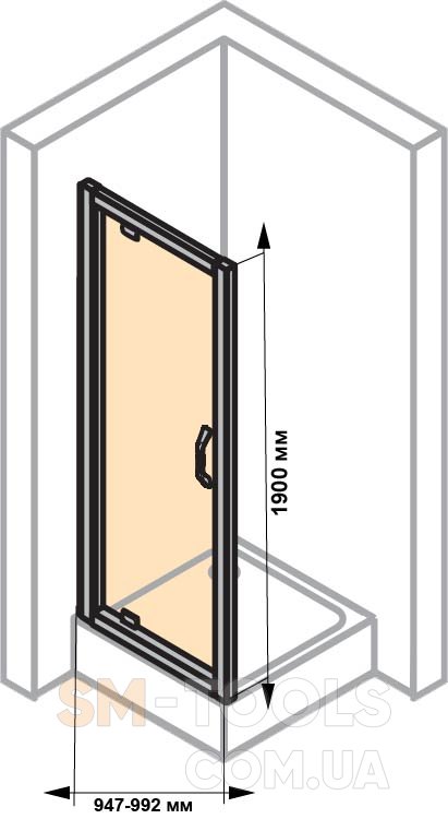 Диапазон регулирования распашной двери для компенсации неровностей стен ниша -30/+20 мм, боковая стенка -15/+30 мм